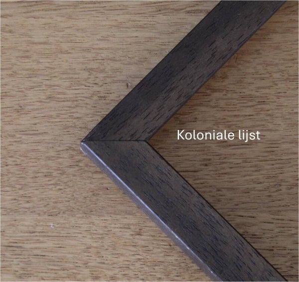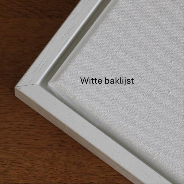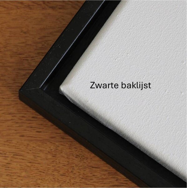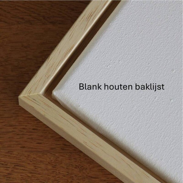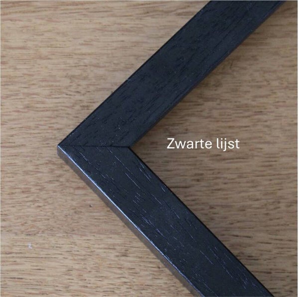 Als u kiest voor een lijst: een canvas komt in een baklijst en een papieren reproductie in een wissellijst.